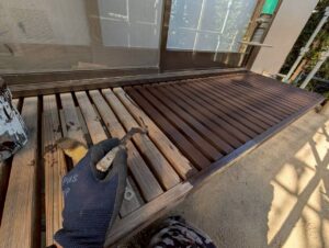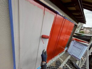 本日は養生をして軒天の塗装を行いました。