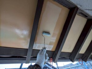 本日は屋根の中塗りと上塗りと外壁の上塗りを行いました。
