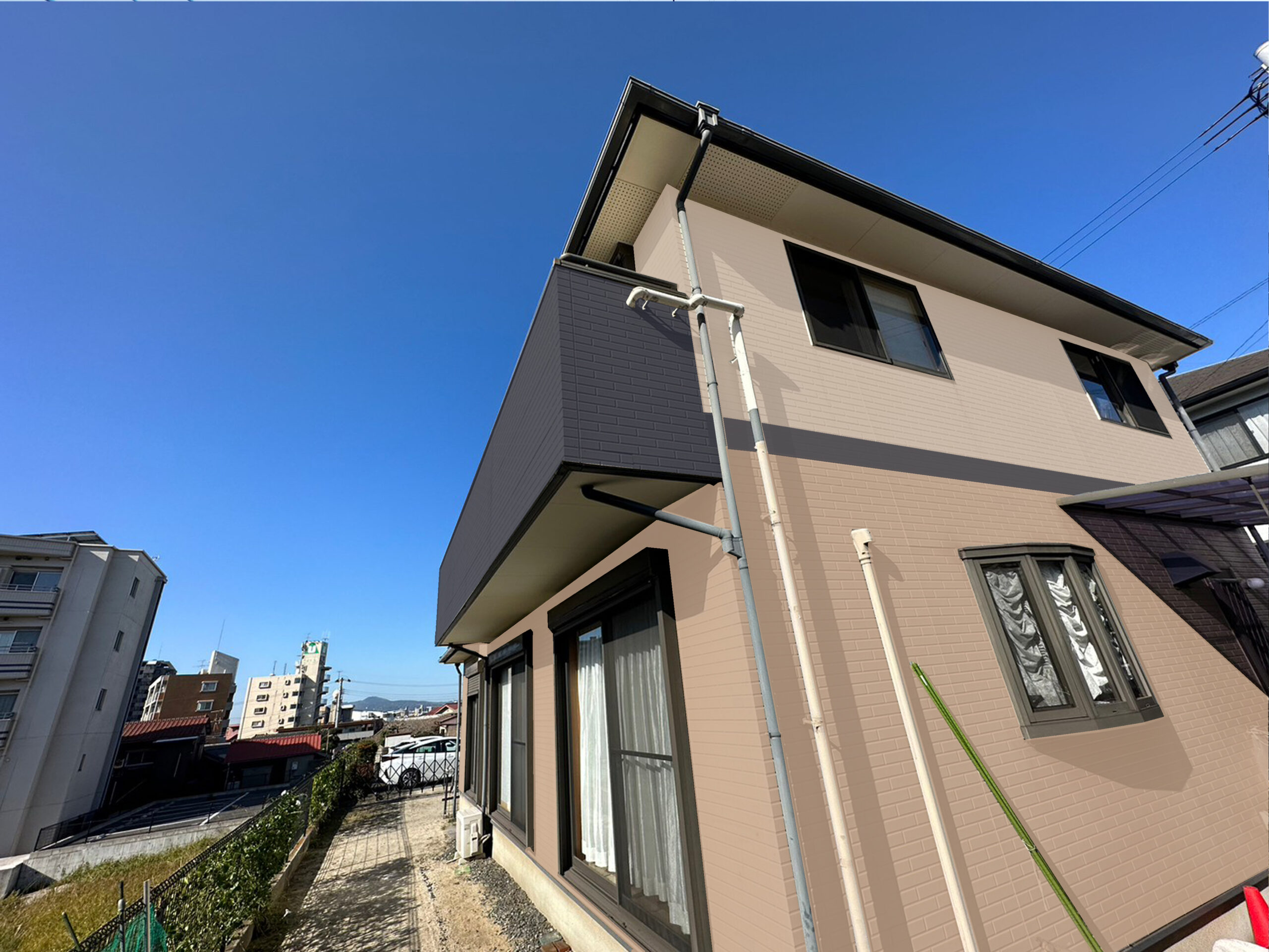 お家の色に関しては皆様とっても悩まれるかと思います。「塗りたい色は自分のお家に合うのか?」「上下で色を変えたい!」「色々なパターンを見てみたい」などのご希望をPCでお家の写真に色を合成し仕上がりイメージのシュミレーションができます。