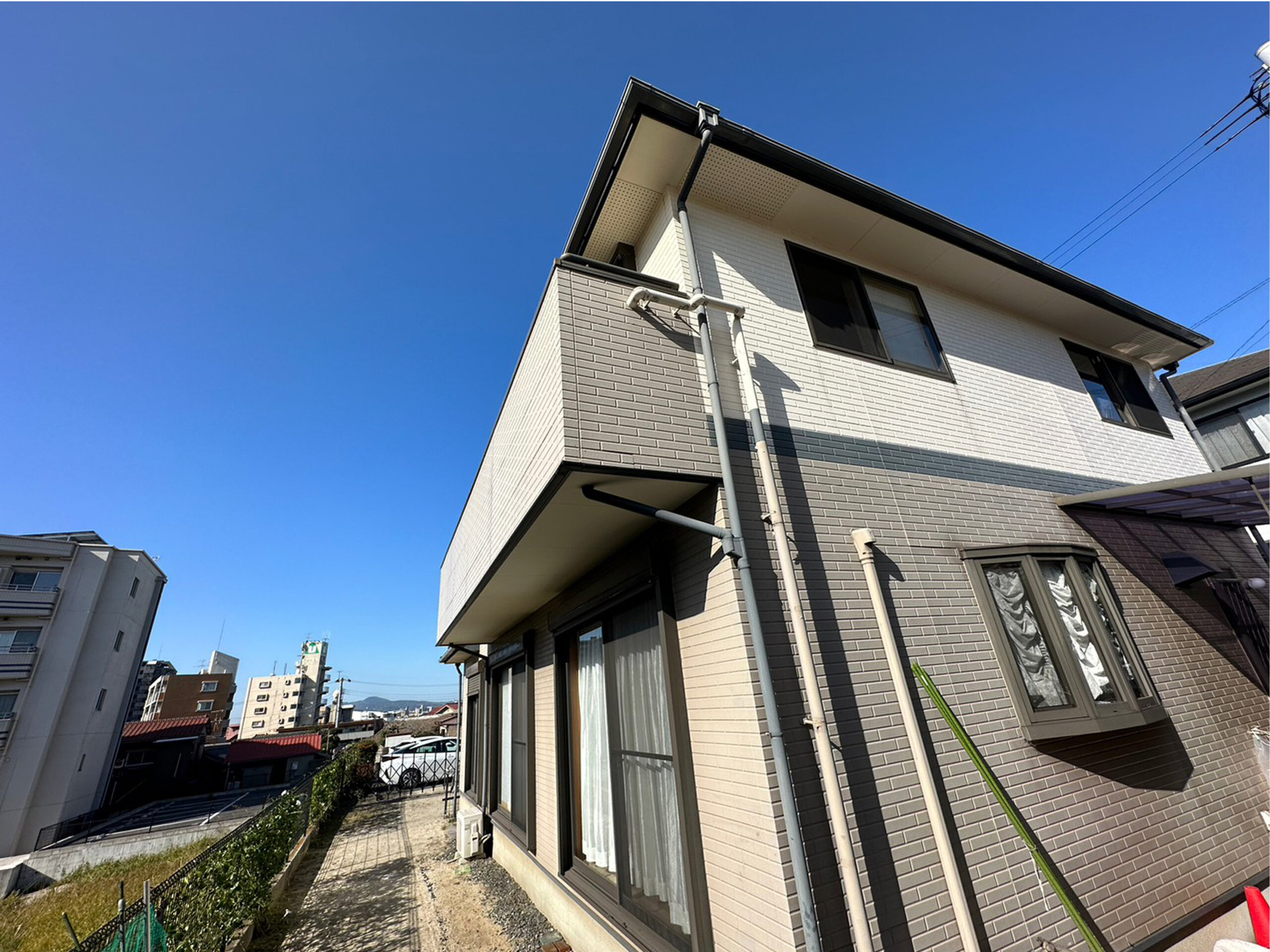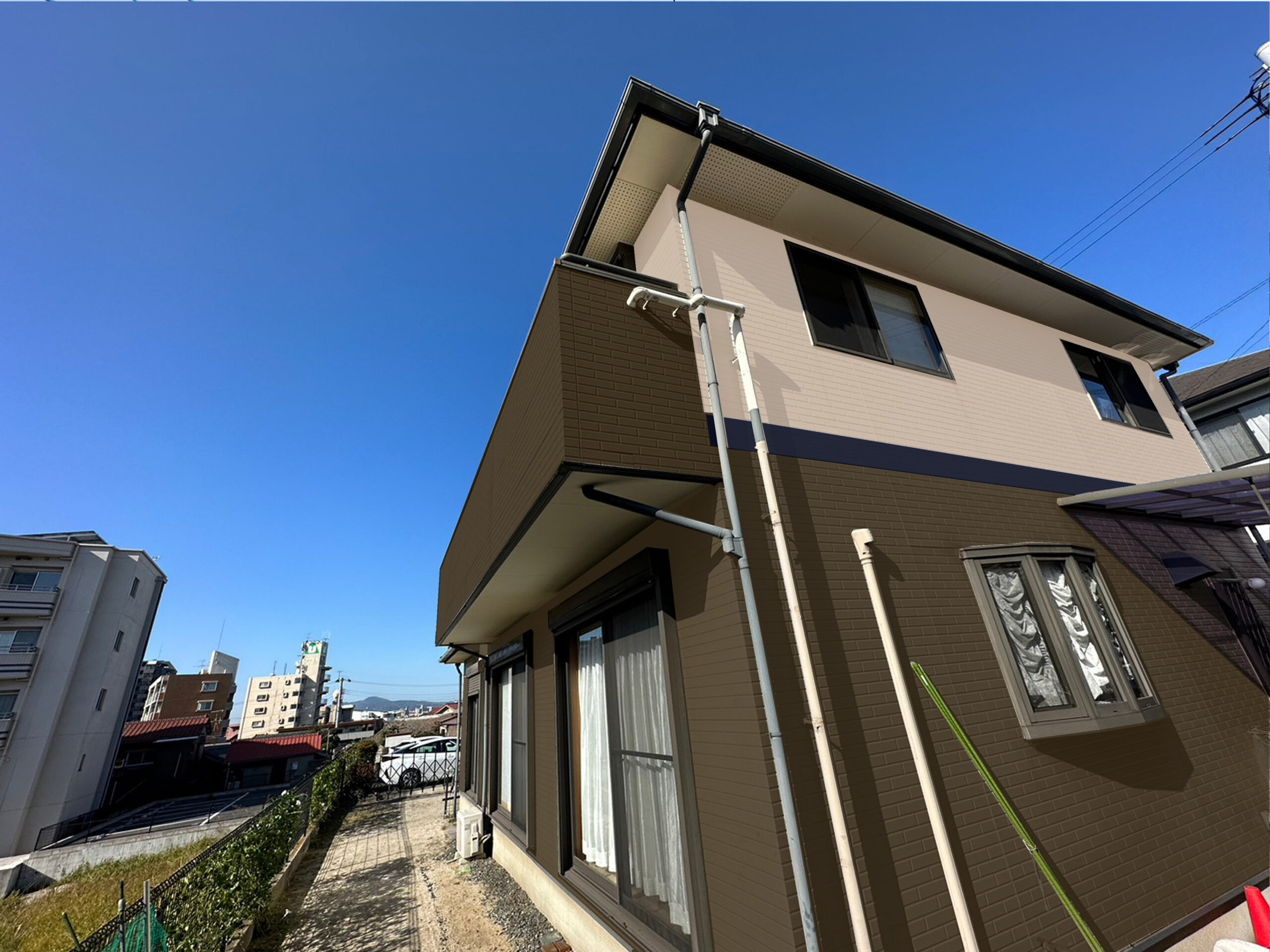 お家の色に関しては皆様とっても悩まれるかと思います。「塗りたい色は自分のお家に合うのか?」「上下で色を変えたい!」「色々なパターンを見てみたい」などのご希望をPCでお家の写真に色を合成し仕上がりイメージのシュミレーションができます。