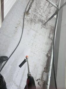 特にチョーキングは塗膜の防水機能が低下している状態で、このまま放置すると雨水の浸入リスクが高まります。高圧洗浄では、こうした劣化した塗膜や汚れ、コケ・カビなどをしっかり除去し、塗料の密着性を高める下地を作っていきます。