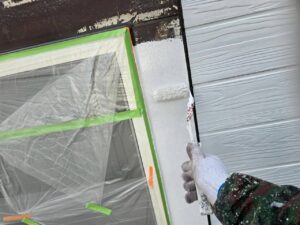 古賀市にて進行中の外壁塗装・屋根塗装工事ですが、本日は「軒天の塗装(1回目・2回目)」と「窓枠・コーナー枠のケレン・下塗り作業」を行いました。