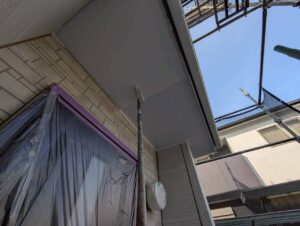 続いて上塗りを行い、美観と防カビ・防湿性能をしっかり確保しました。軒天は普段あまり意識されない部分ですが、仕上がりの印象を大きく左右するポイントでもあります。