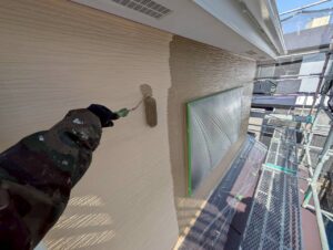 中塗りで形成した塗膜の上に均一に塗り重ねることで、しっかりとした厚みのある塗膜が完成します。この工程により、美観はもちろん、防水性・耐久性が大きく向上します。