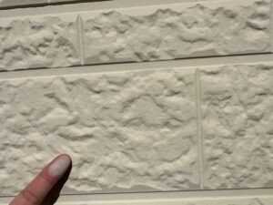外壁を触ったときに白い粉が手につく現象です。