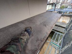 前日に行った高圧洗浄に続き、ケレン作業・目荒らし・錆止め塗装を行いました。