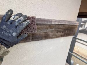 また玄関まわりの柱、桁は、塗膜を一度剥離し、染み抜きを行ってからステインクリア仕上げを行うため、美観も大きく改善される予定です。