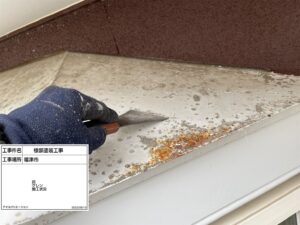 また、鉄部のケレン作業では、旧塗膜やサビをしっかり除去し、塗料が密着しやすい状態を作っています。