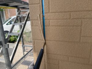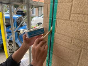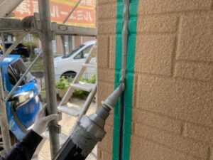 シーリング工事が完了しましたので、次は養生作業を行い、その後外壁の下塗りへと進んでいきます。