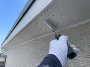 【遠賀郡 K様邸 外壁塗装】軒天上塗り1回目を施工!美観と耐久性を高めていきます