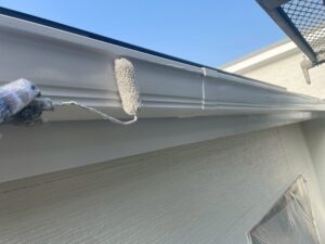 あわせて、軒樋・破風・鼻隠しといった付帯部の塗装も進め、下塗り・上塗りまで施工しました。