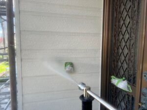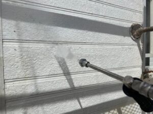本日は外壁塗装前の重要工程である高圧洗浄を行いました。