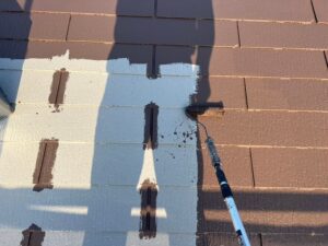 本日も北九州市八幡西区の戸建て住宅にて、塗装工事を進めております。 外壁塗装の仕上げに続き、本日は付帯部である雨樋の塗装作業を行いました。 今回の作業は、雨樋の上塗り1回目・上塗り2回目の施工です。 使用塗料はロックペイントの「ユメロックDX」を使用し、耐久性と美観の両立を図っています。 施工前の雨樋は、紫外線や雨風の影響により色褪せが進行している状態でした。 雨樋は普段あまり意識されにくい部分ですが、外壁塗装と同様に劣化症状が進むと見た目の印象を大きく損ないます。 まずは上塗り1回目で下地を整え、塗料をしっかりと密着させていきます。 この工程でムラなく塗布することが、最終的な仕上がりに大きく影響します。 続いて上塗り2回目を行い、塗膜の厚みを確保しながらツヤと均一性を出していきます。 2回塗りを行うことで、耐候性・防水性が向上し、長期間美しい状態を維持することが可能になります。 北九州市八幡西区は紫外線や雨の影響を受けやすく、雨樋や外壁の色褪せといった劣化症状が進行しやすい地域です。 そのため、外壁塗装とあわせて付帯部もしっかりメンテナンスすることが重要です。 本日の施工ポイント ・雨樋は2回塗りで耐久性と美観を向上 ・ユメロックDXでしっかりとした塗膜形成 ・付帯部まで丁寧に仕上げることで全体の完成度アップ ▶ 今後の作業予定 最終確認や細部の手直しを行い、工事完了へと進んでいきます。 北九州市八幡西区で外壁塗装・屋根塗装をご検討中の方へ 外壁塗装を行う際は、雨樋や破風・軒天といった付帯部の塗装も非常に重要です。 付帯部の劣化症状(色褪せ・ひび割れなど)を放置すると、建物全体の印象や耐久性に影響を与えます。 アイルペイントでは、北九州市八幡西区を中心に無料点検・無料見積もりを実施しております! ・外壁のチョーキングや色あせ ・屋根の劣化や防水性の低下 ・雨樋や鉄部の劣化症状 気になる症状があれば、ぜひ一度ご相談ください! 北九州市八幡西区の外壁塗装・屋根塗装はアイルペイントへ!無料点検お気軽にどうぞ! >>お見積り・お問い合わせはこちら!