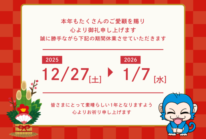 年末年始休業のご案内