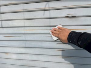本日は北九州市八幡西区にて、戸建て住宅の付帯部塗装を行いました。 外壁塗装・屋根塗装とあわせて重要な工程となる付帯部の施工です。 まずは鉄部(雨戸・庇・車庫シャッター)のケレン作業からスタート。 既存の錆や劣化した塗膜をしっかりと除去し、塗料の密着性を高めていきます。 今回の現場では、鉄部の錆が広範囲に発生しており、このまま放置すると腐食が進行し、部材交換が必要になる恐れがある状態でした。 ケレン後は、錆の進行を抑えるために「ハイポンデクロ」を使用した錆止め塗装を施工。 下地処理と錆止めは、外壁塗装においても耐久性を大きく左右する重要なポイントです。 また、木部では塗膜の剥がれが見られ、こちらも適切な下地調整を行ったうえで補修を実施。 さらに、駐車場前の土間にはひび割れも確認されており、今後の補修対応も視野に入れております。 続いて軒天部分の塗装には「エバーロック」を使用。 軒天は湿気がこもりやすく、カビや汚れが発生しやすい箇所のため、適切な塗料選定が重要です。 北九州市八幡西区は湿気の影響を受けやすく、軒天や外壁にカビ・苔が発生しやすい地域特性があります。 今回のように、劣化症状(錆・剥がれ・ひび割れ)を早期に発見し、適切な処置を行うことで、建物の寿命を大きく延ばすことが可能です。 本日の施工ポイント ・鉄部はケレン+錆止めで耐久性アップ ・木部は剥がれ補修を丁寧に実施 ・軒天は環境に合わせた塗料選定 ▶ 今後の作業予定 付帯部の仕上げ塗装を進めながら、外壁塗装・屋根塗装の工程へと進んでいきます。 北九州市八幡西区で外壁塗装・屋根塗装をご検討中の方へ 外壁塗装や屋根塗装はもちろん、今回のような付帯部の劣化症状も見逃せません。 「少し錆が出ているだけ…」と思っていても、内部で劣化が進んでいるケースは非常に多いです。 アイルペイントでは、北九州市八幡西区を中心に無料点検・無料見積もりを実施しております! ・外壁のチョーキング ・屋根の色あせ ・鉄部の錆や木部の剥がれ このような症状が気になる方は、ぜひお気軽にご相談ください! お問い合わせ・無料点検のご依頼はアイルペイントまで!
